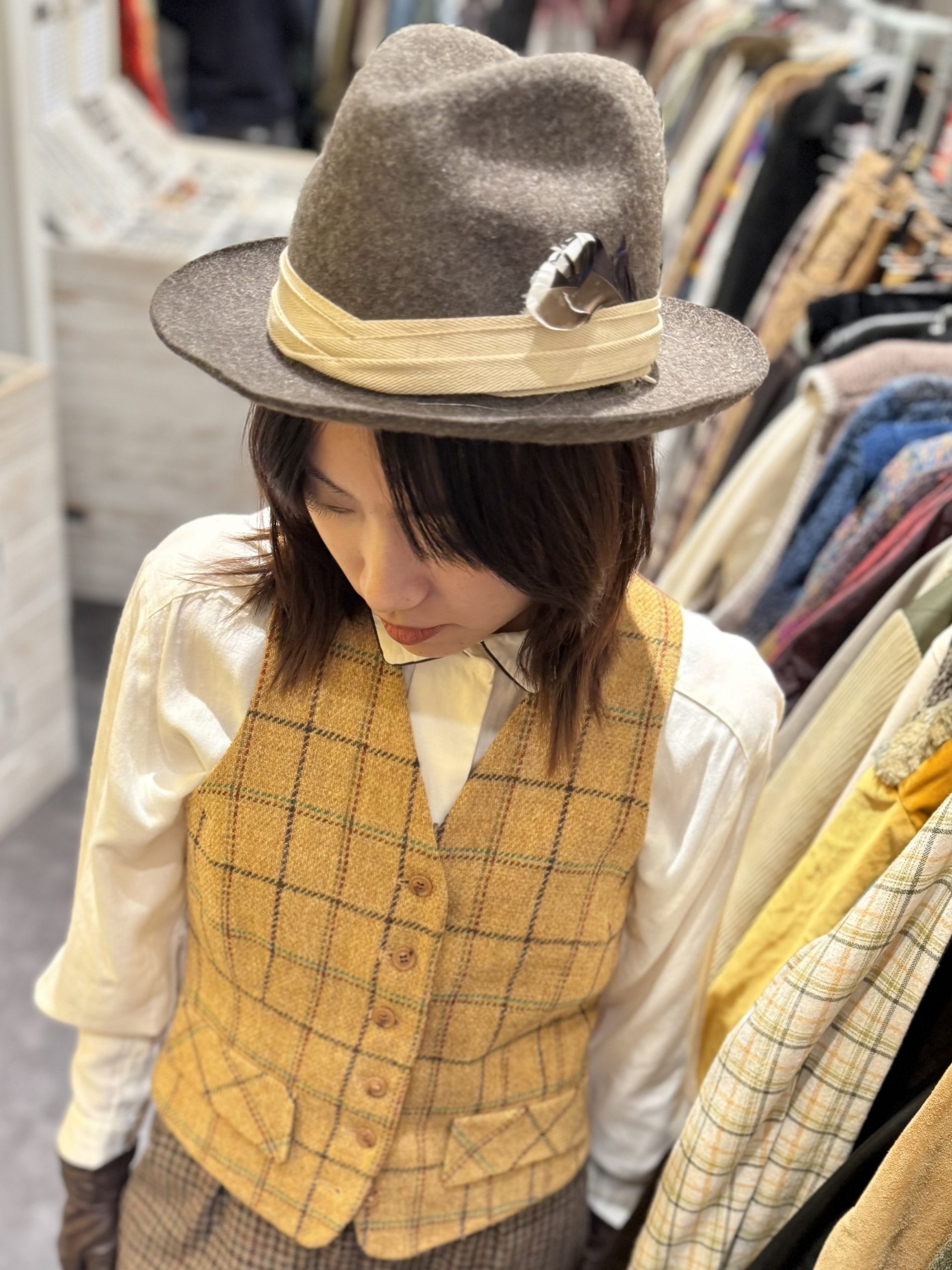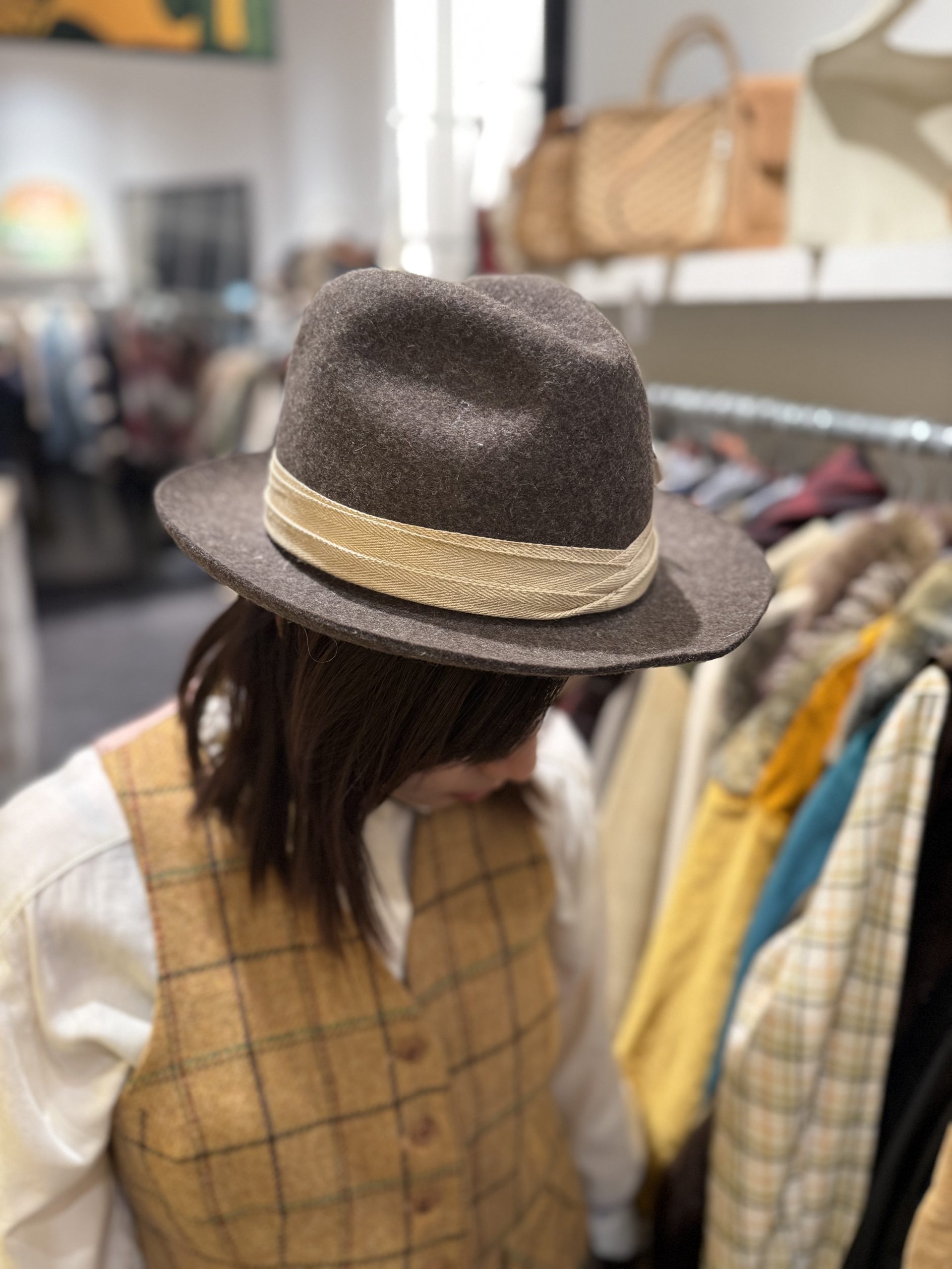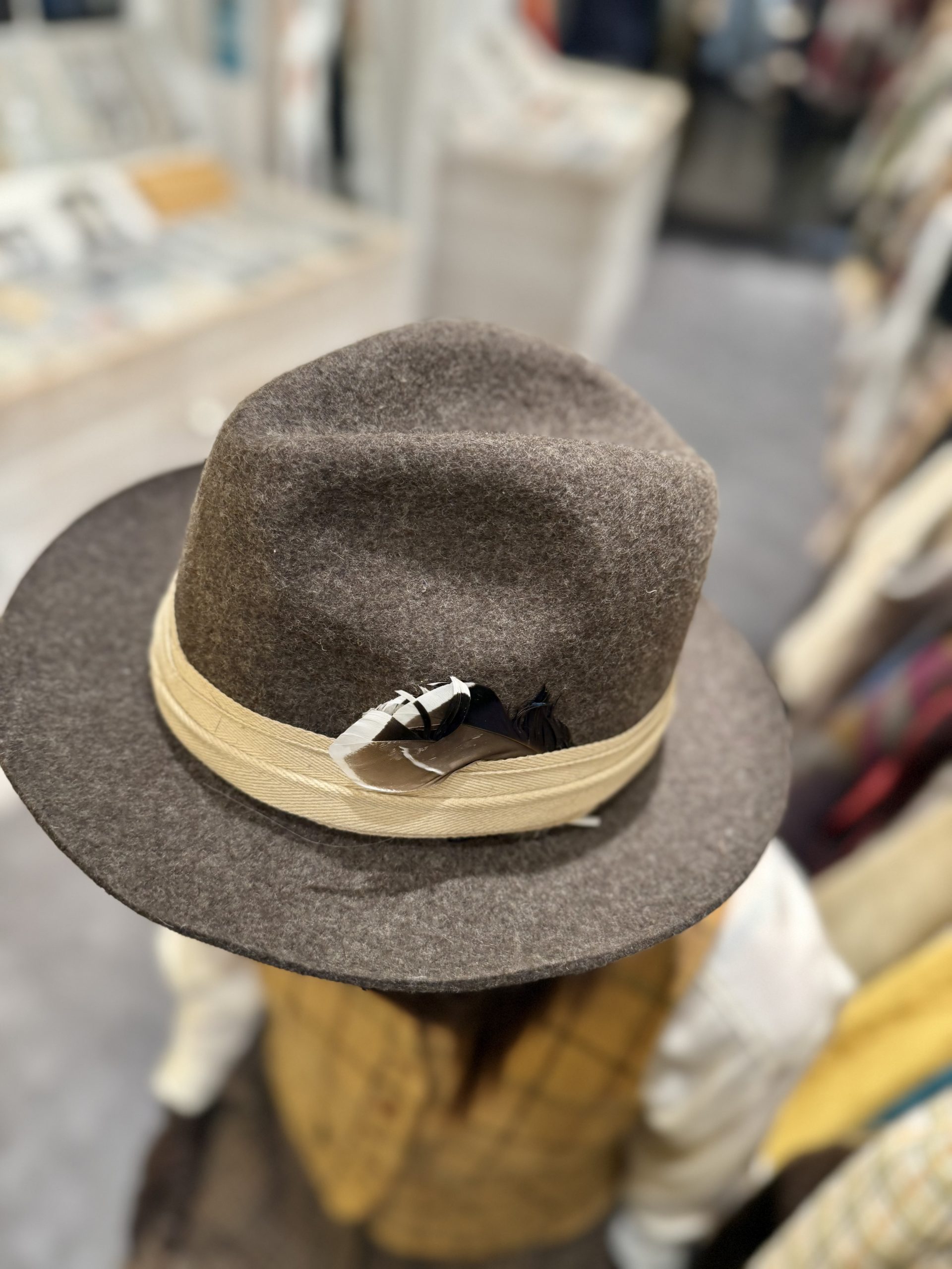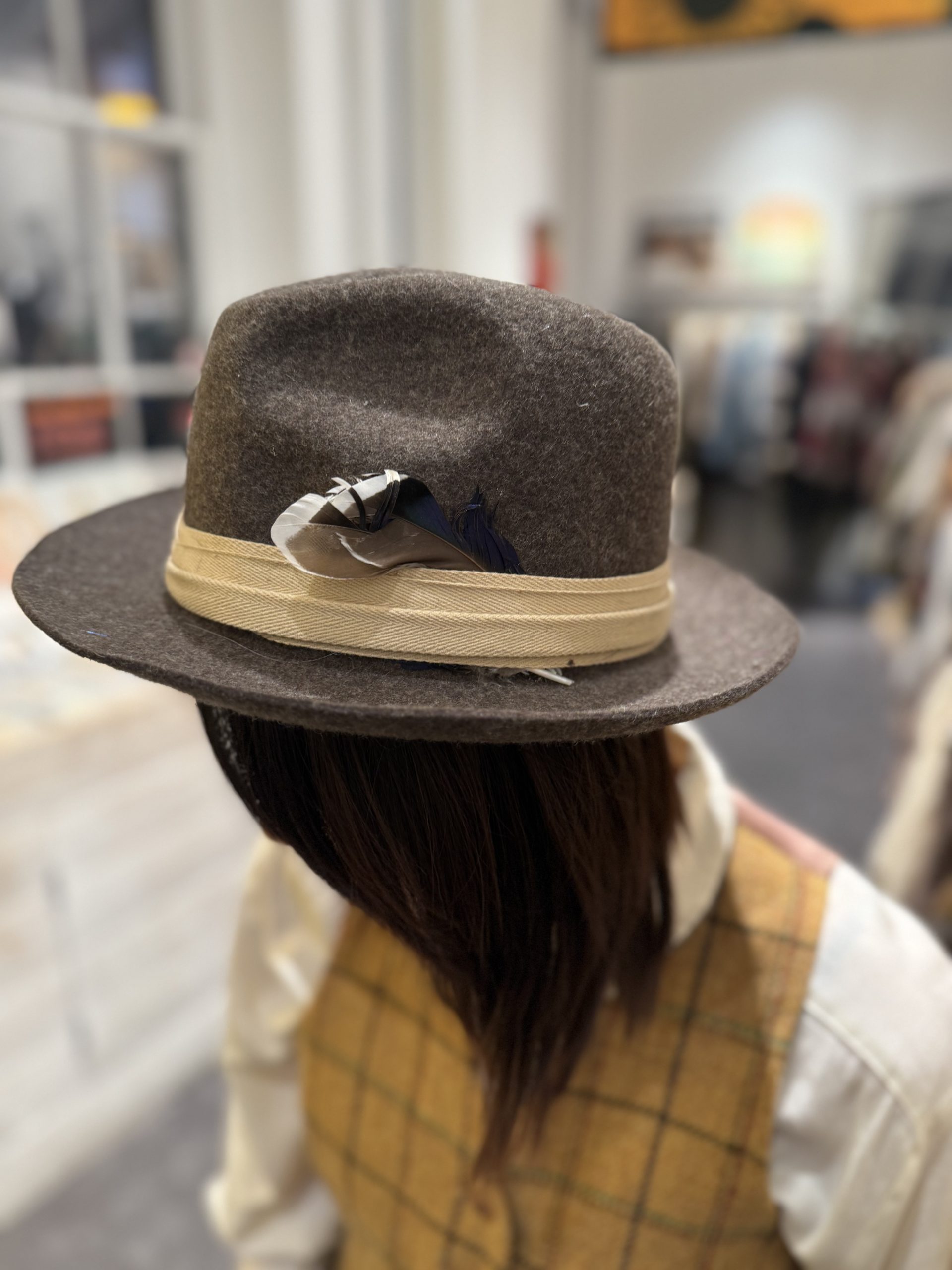 - Detail: Original feather trim tucked into the hatband for subtle character
