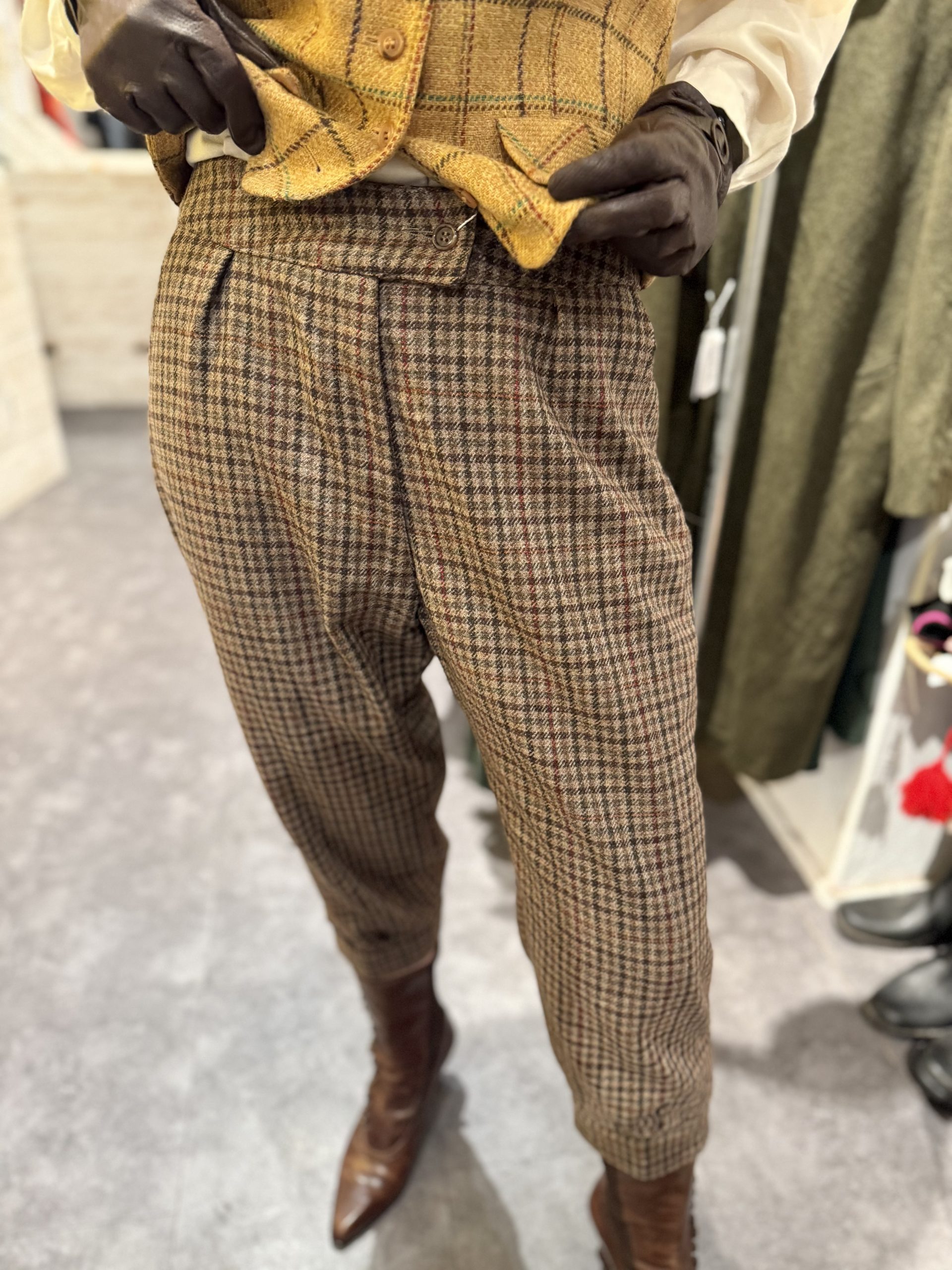 - Style: Mid-1960s countryside equestrian / heritage riding trousers