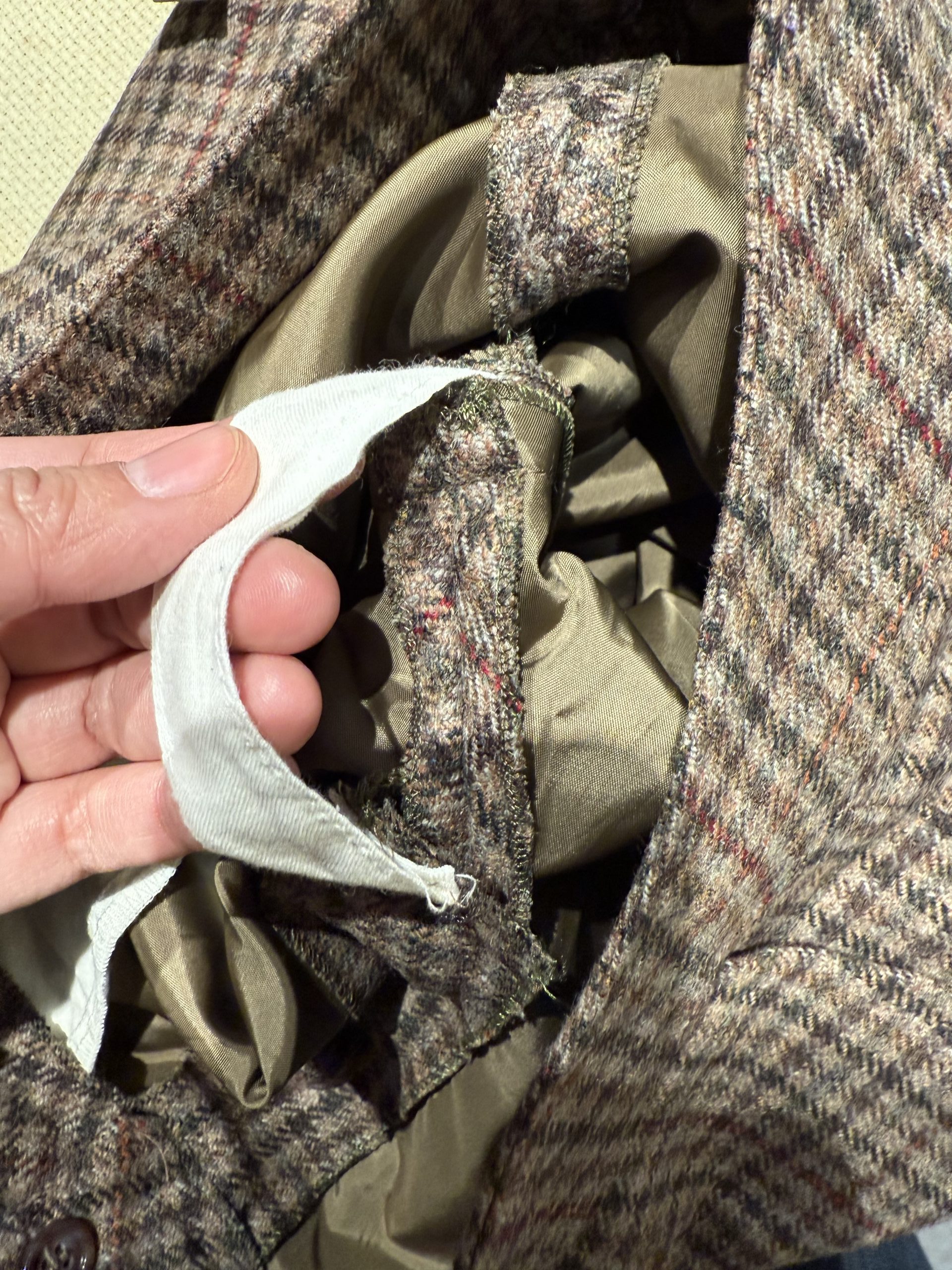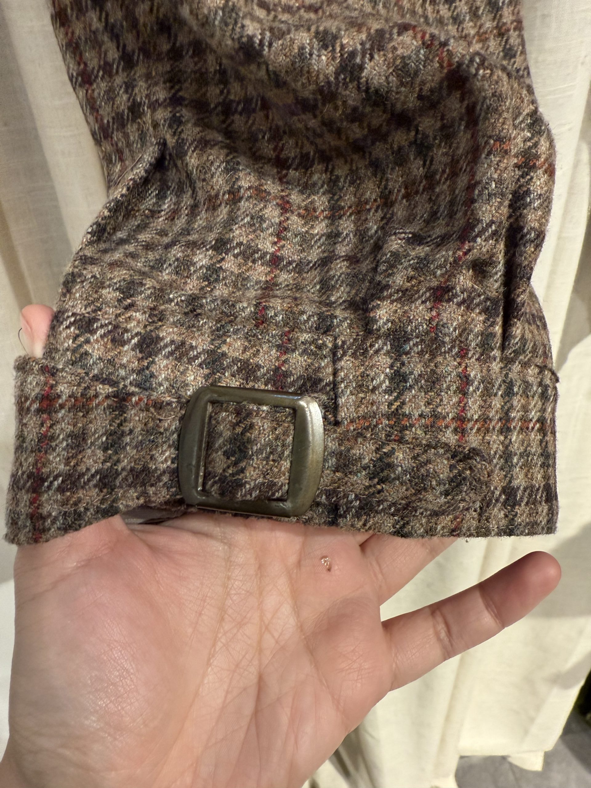 - Material: Feels like cotton-blended wool tweed with a synthetic lining