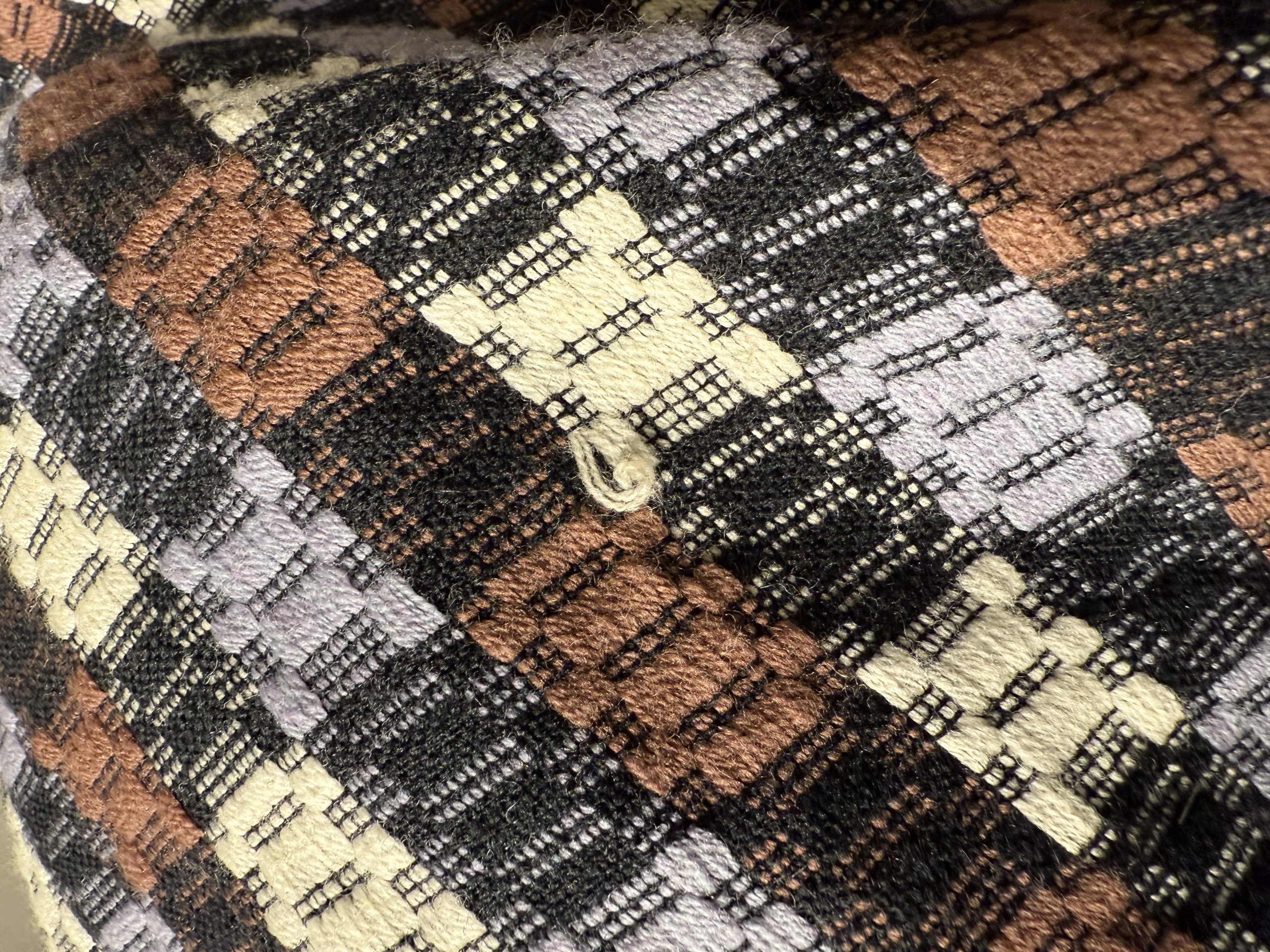 Dry clean only. Do not machine wash. Store folded or gently rolled to preserve the weave and avoid stretching. Keep away from moths and direct sunlight.