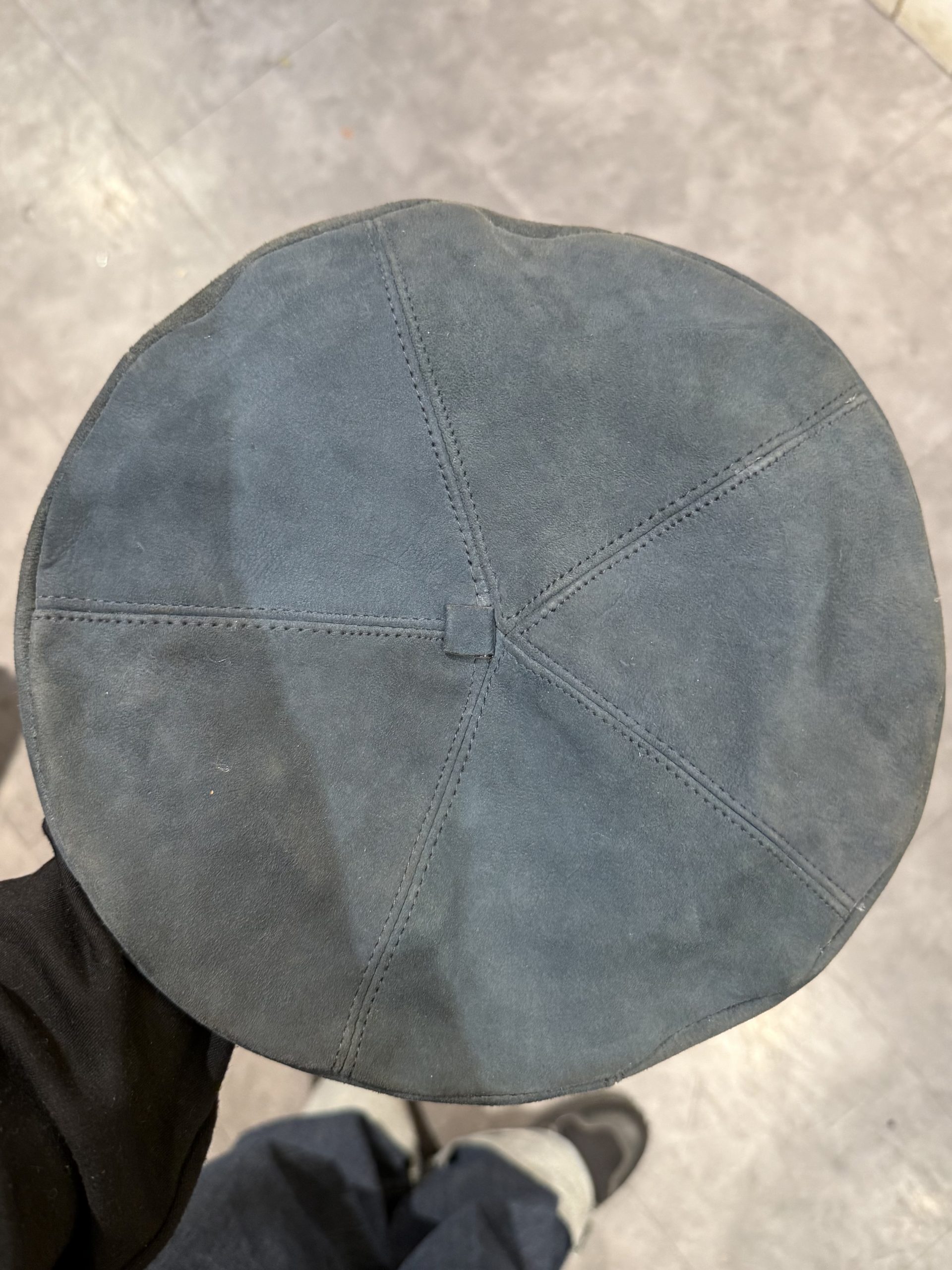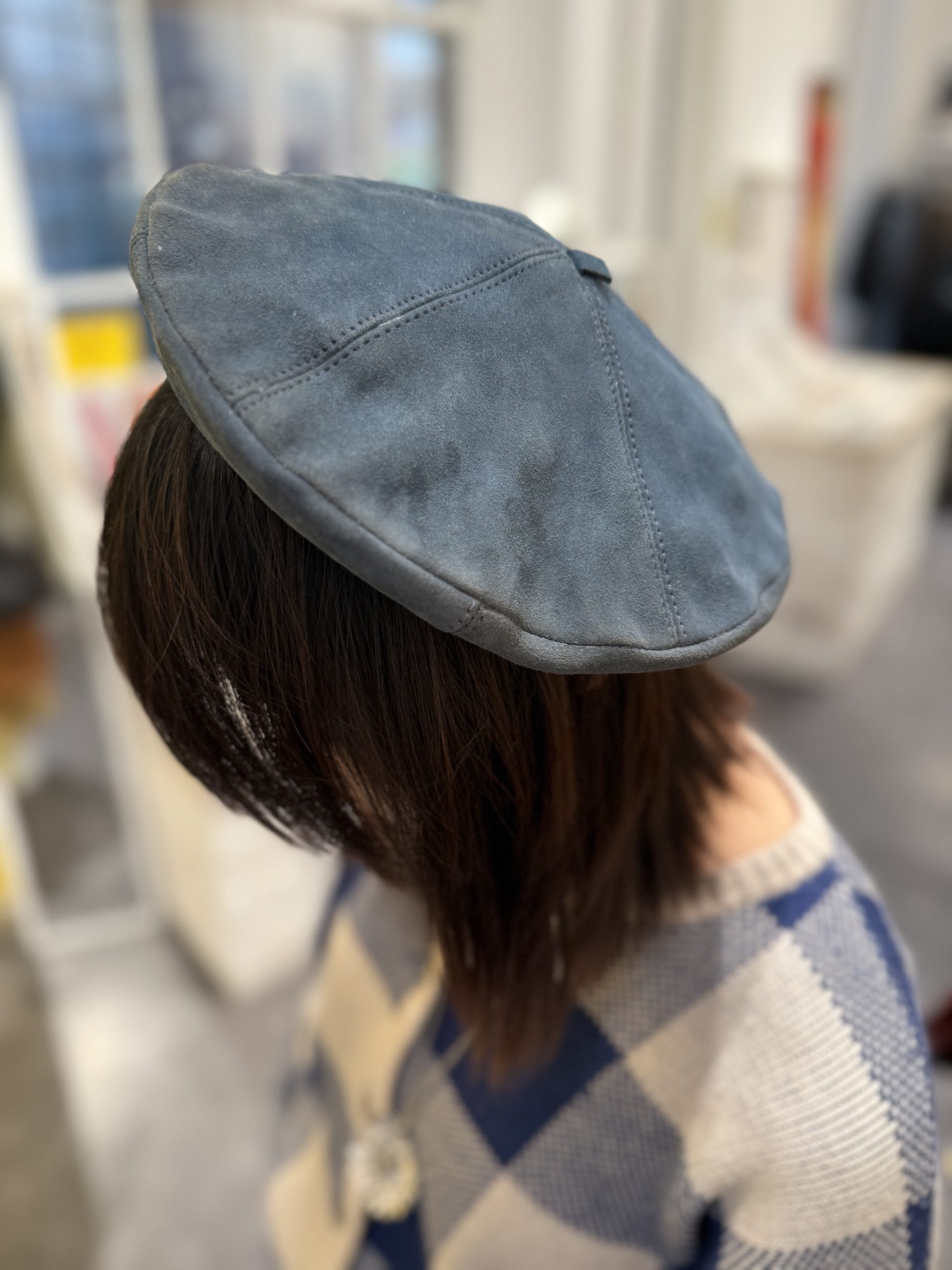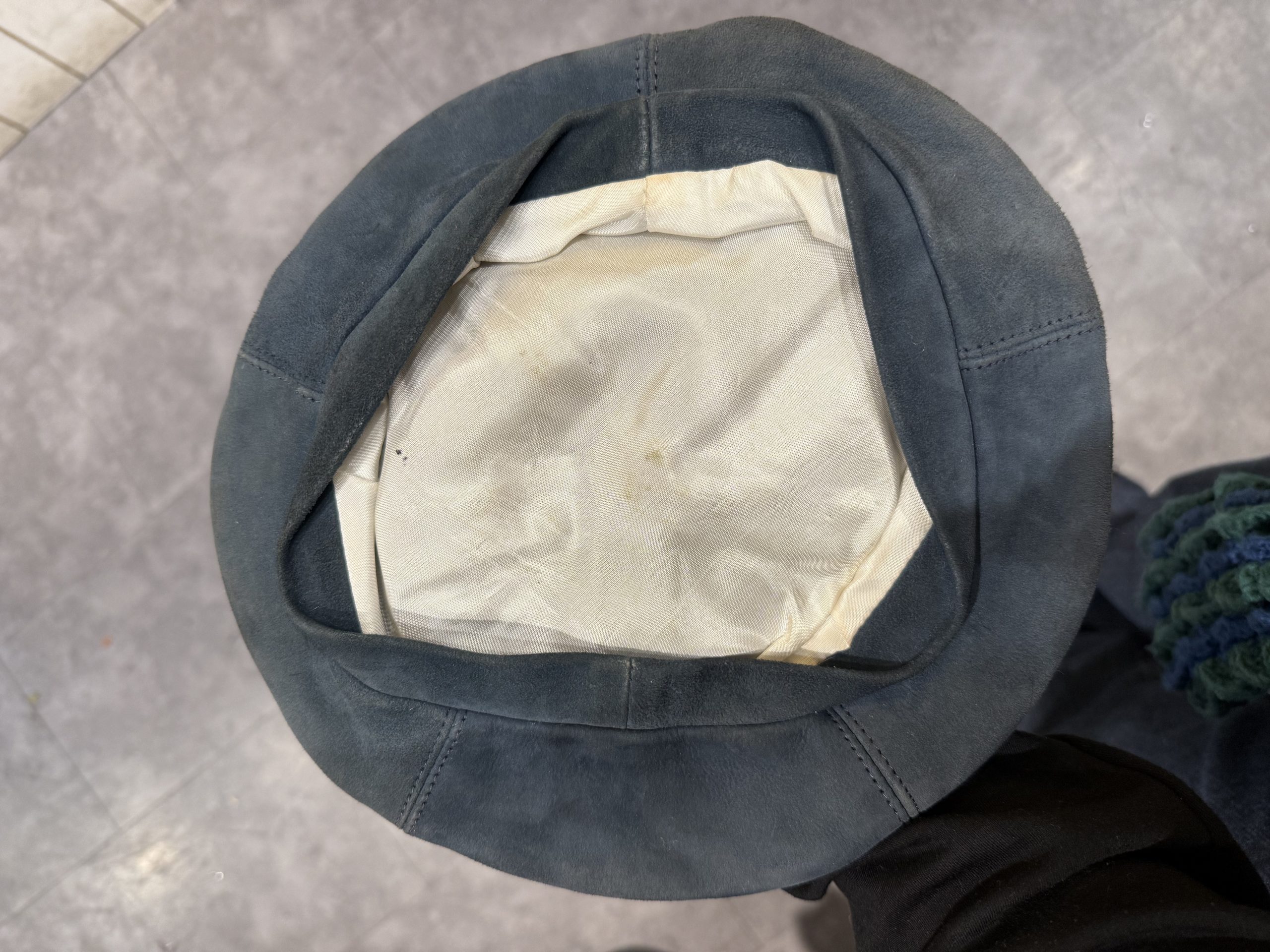 This 1970s suede beret represents a period when soft leather accessories were highly popular in European boutique fashion. The six-panel cut and acetate lining reflect typical late-1970s–early-1980s millinery construction. Suede berets offered a richer texture and more elegant drape than wool styles, making them a chic alternative for the fashion-conscious woman of the time.