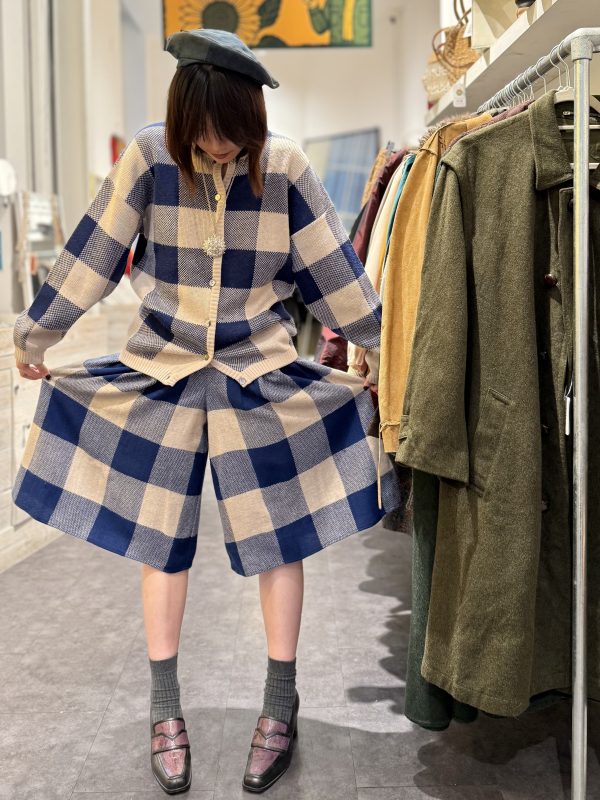 Sherry was an independent Italian knitwear label active during the late 1970s and early 1980s, producing boutique-quality knit sets in soft wool blends. This ensemble reflects the era’s practical yet refined approach to everyday fashion — comfortable silhouettes, coordinated separates, and timeless check patterns designed for easy elegance.